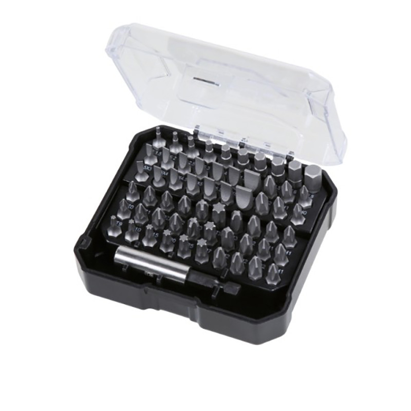 - Polyvalence : 60 embouts adaptés aux principales visseries (plat, PH, PZ, Allen, Torx).