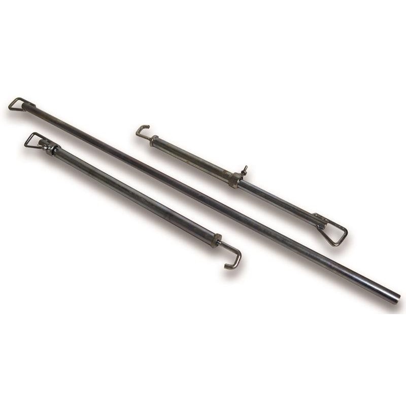 L'ensemble de 5 barres de support en fer garantit un maintien sécurisé des pièces mobiles comme portes, capots ou coffres, pendant vos travaux de carrosserie. Faciles à installer avec des crochets et boucles, ces barres vous permettent de garder les éléments ouverts et fixes, assurant un travail sécurisé et efficace.